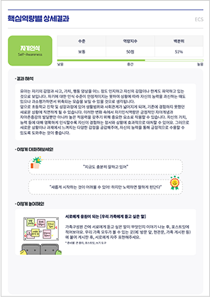 5가지 핵심역량의 결과에 해석이 제공되어, 현재의 발달 상황에 대한 이해를 도울 수 있습니다.